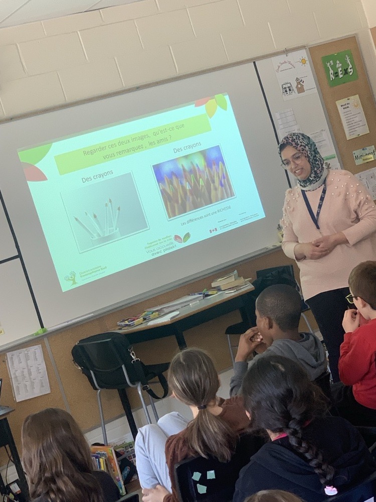 Au mois d'avril, Madame Hajar et sa collèque, Chantal Laviolette, ont présenter une atelier sur l'inclusion aux élèves de 3e année. C'était un moment superbe où chacun a pu comprendre l'importance de l'inclusion. Les questions des élèves ont été brillamment abordées, et les pâtes ont symbolisé de manière colorée que malgré nos différences de tailles, de couleurs et de langues, nous sommes tous des humains !