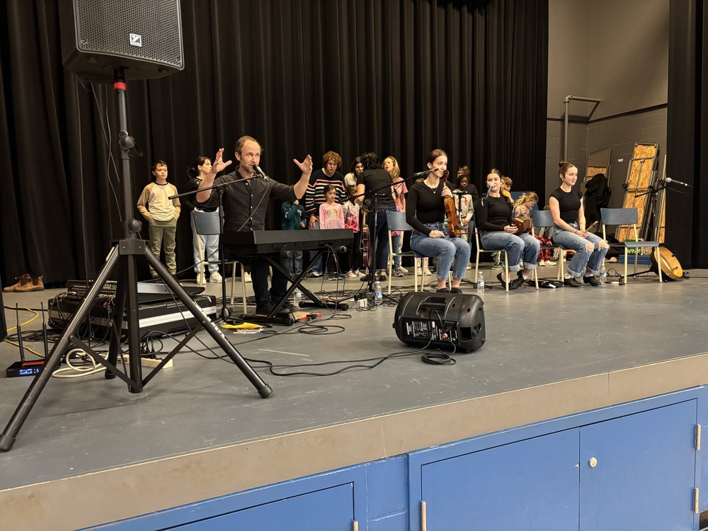 Dans le cadre de notre deuxième spectacle Cerf-Volant, nous avons eu l'honneur d’accueillir la Famille Leblanc, une famille de musiciens passionnés qui font rayonner la musique traditionnelle acadienne. Composée de Rebecca, Robin, Charlotte, Rosalie et Mélodie, la famille a offert une performance vibrante qui a su captiver l’ensemble de notre école.